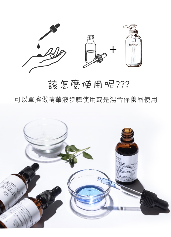 混合保養品使用:添加在精華液、乳液、面霜,可提升保養功效。