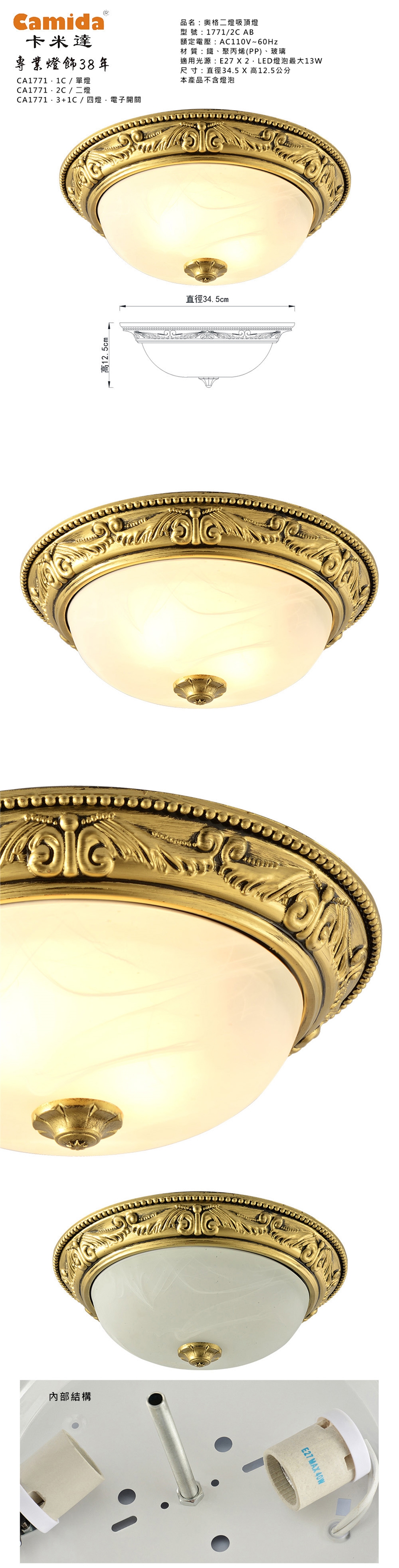 光源:E27 X 2、LED燈泡最大13W、本產品不含燈泡