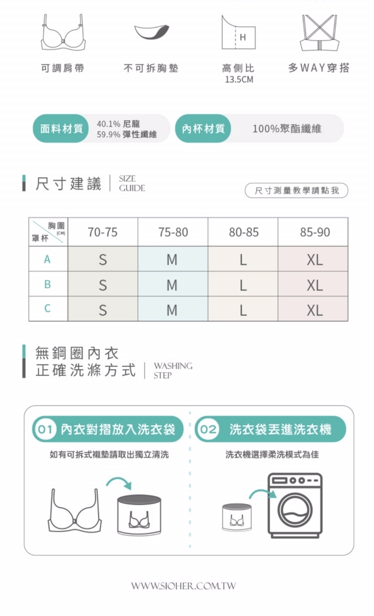 .洗滌方式:手洗(深色衣物與淺色衣物請分開洗,請勿浸泡或使用洗衣機、脫水機,及任何刷子類物品清洗,請使用中性洗劑(沐浴乳、洗 精等),加入少許清水,待充分溶解后再放入衣物清洗。
