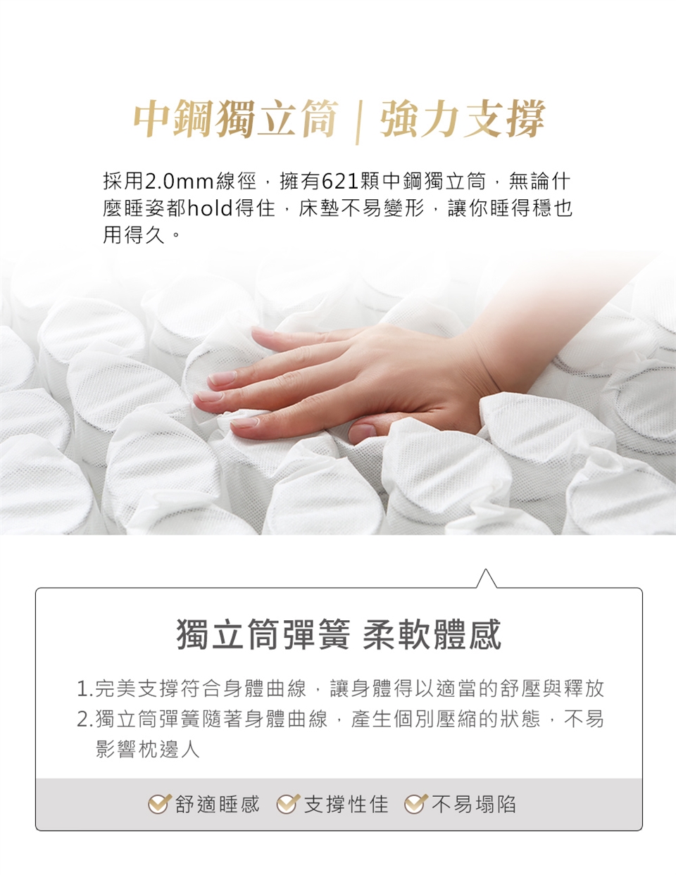 並非是製造上的瑕疵,此現像代表床墊可以提供您舒適的睡眠品質,