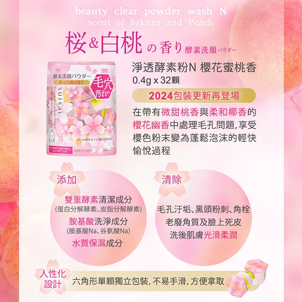 -suisai 櫻花蜜桃香淨透酵素粉 32顆