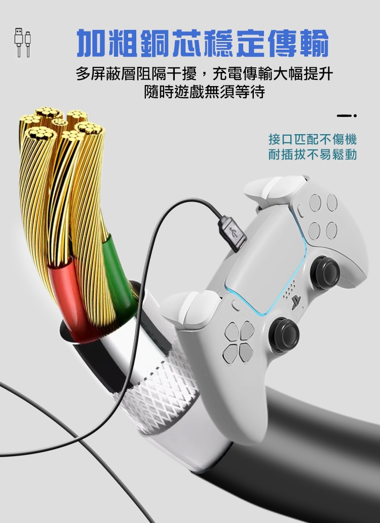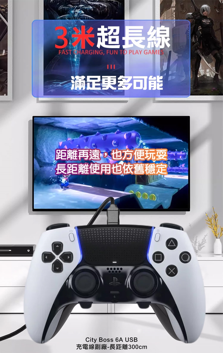 線材長度:約300cm 可以保持距離邊玩遊戲邊充電