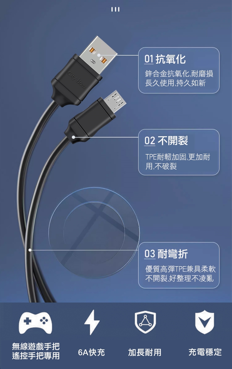 CityBoss for Micro USB 充電傳輸線-超長300cm