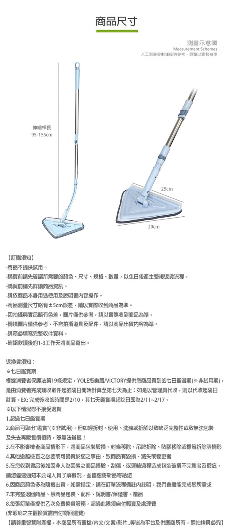 根據消費者保護法第19條規定,YOLE悠樂居/VICTORY提供您商品貨到的七日鑑賞期(※非試用期),是由消費者完成簽收取件起的隔日開始計算至第七天為止;