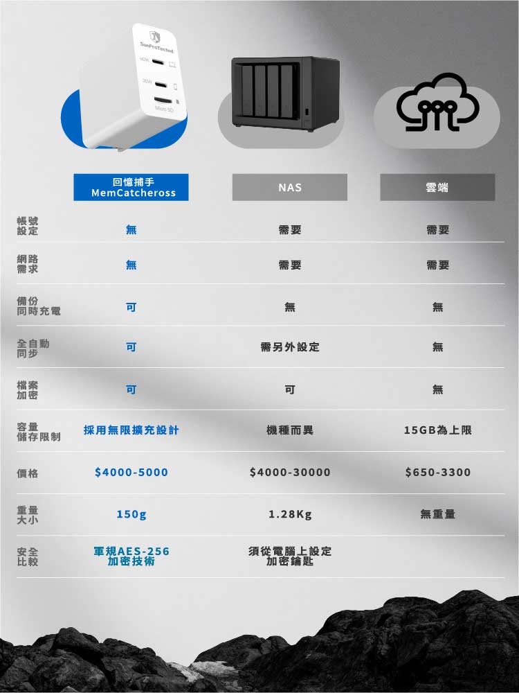 ▌回憶捕手 MemCatcher Cross 是全球首個給個人使用的「離線跨系統資料中心」, 它沒有雲端的資料代管風險,沒有NAS複雜的設定配置、無需連接網路、更不需要專業技術維護, 給您更安全、更簡單的全新選擇。