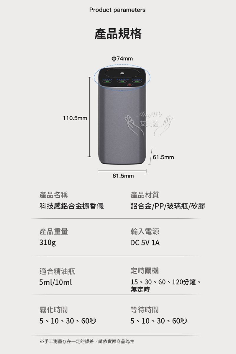*擴香儀為電子產品,勿將商品浸泡於水中或於水龍頭下清洗!