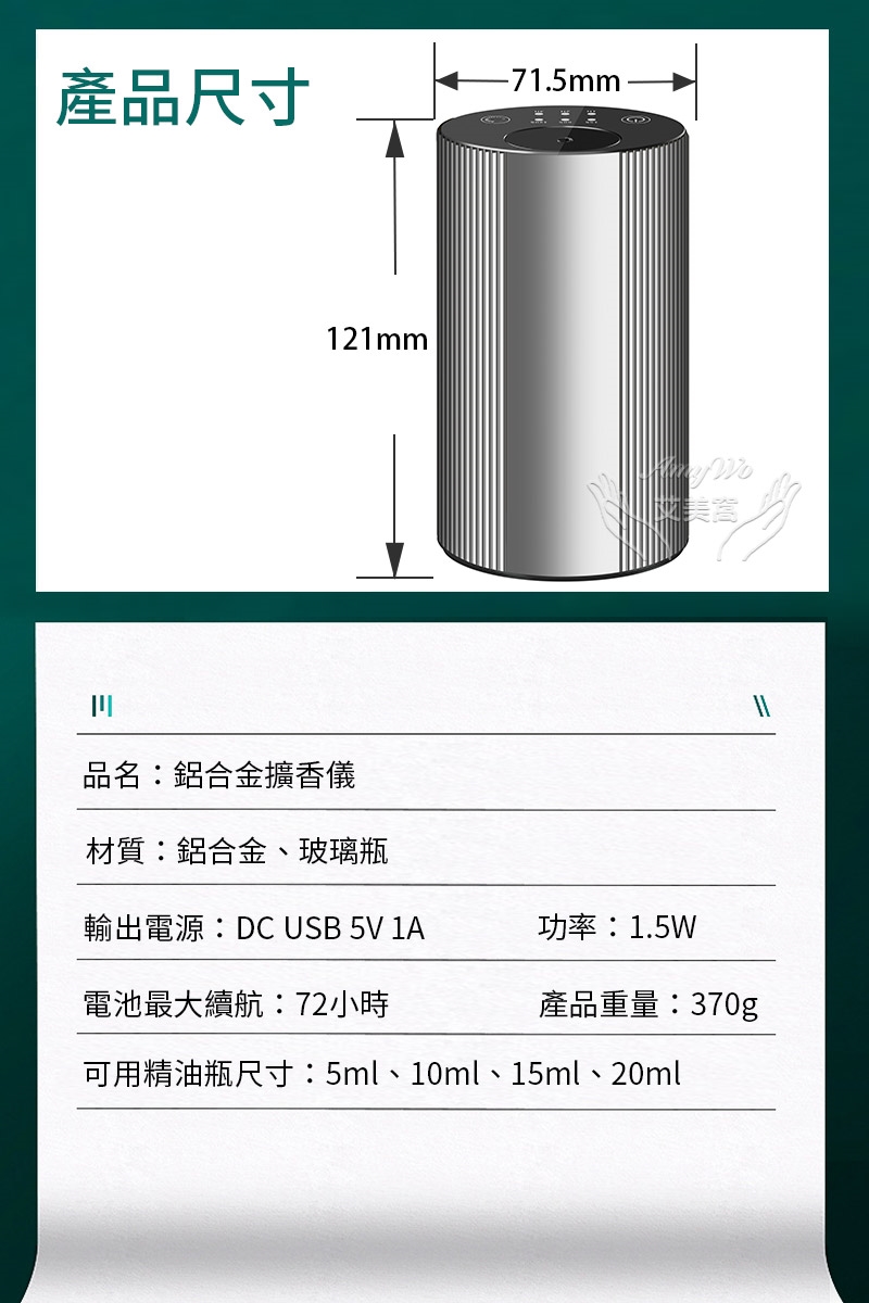 *擴香儀為電子產品,勿將商品浸泡於水中或於水龍頭下清洗!