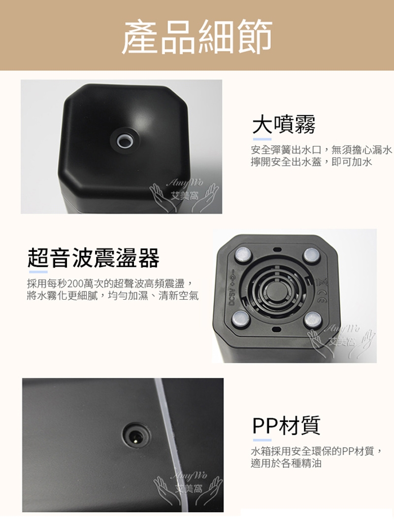 3.本產品裝水後可添加各類精油,純露,花水...等.