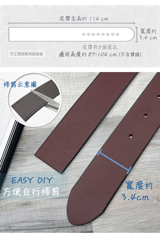 可依個人腰圍裁剪皮帶長度