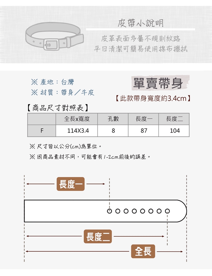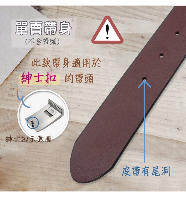 可搭配活動式帶頭,方便自行剪裁皮帶尺寸~