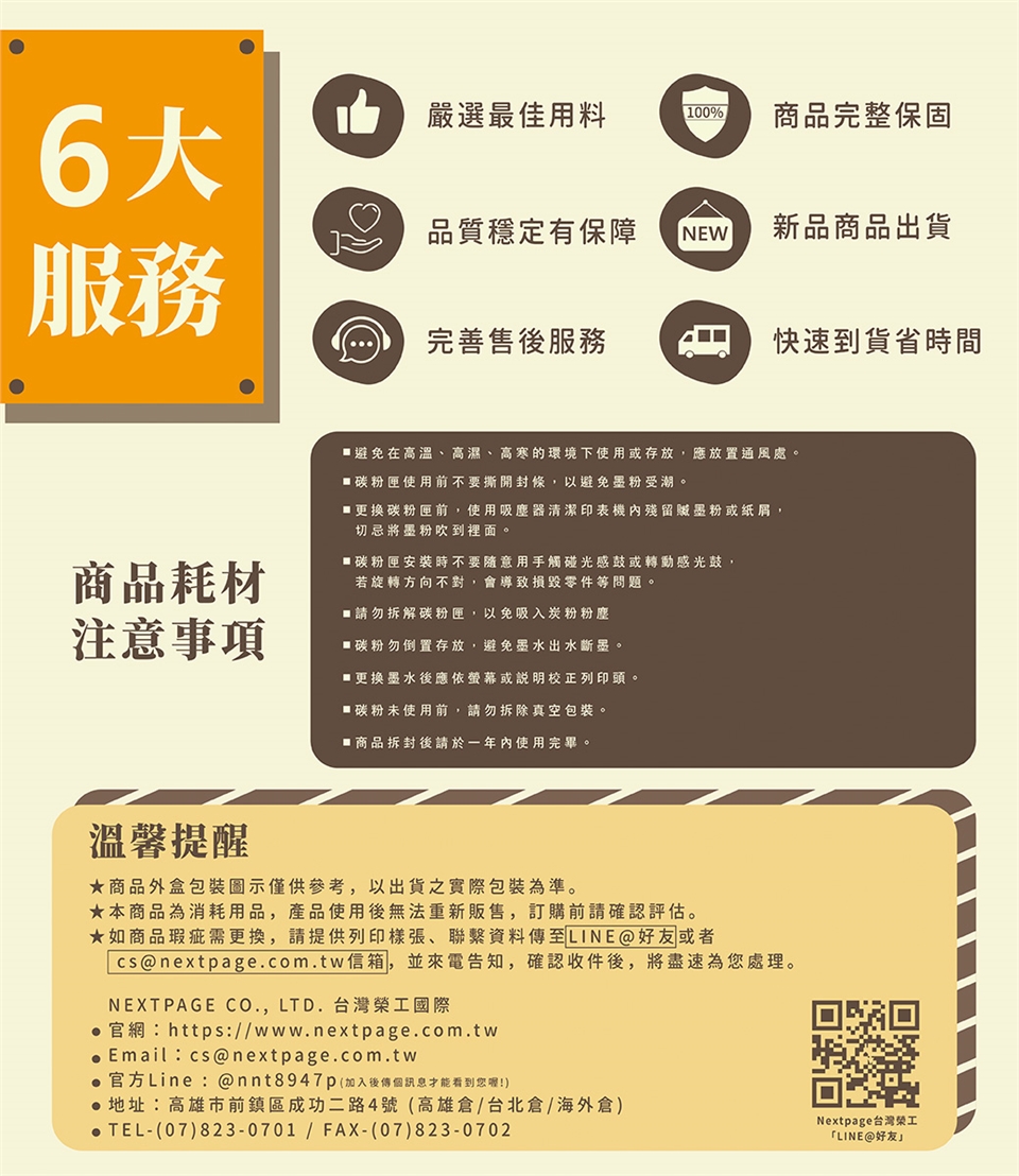 ★如商品瑕疵需更換,請提供列印樣張、聯繫資料傳至cs@nextpage.com.tw信箱,並來電07-823-0701確認收件後,將盡速為您處理。