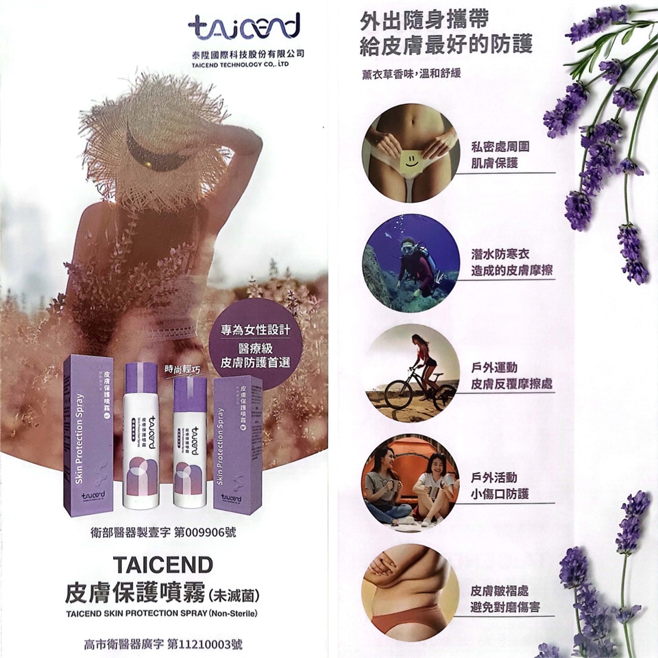 ◆核定品名:TAICEND 皮膚保護噴霧(未滅菌)