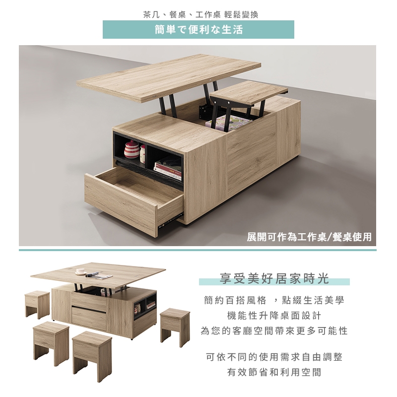 機能性升降功能,可依不同需求調整桌面高度,增添實用便利性!
