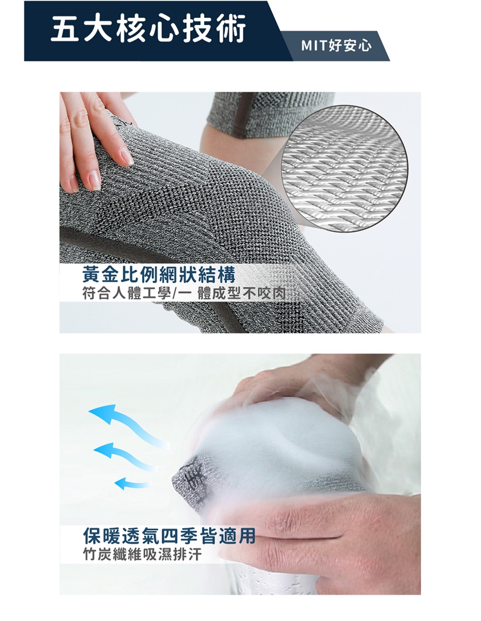 2. 乾爽透氣不易悶汗,360度貼合膝蓋,不影響走動