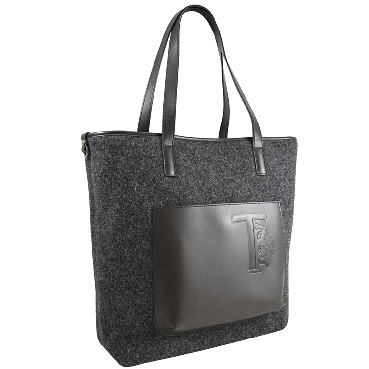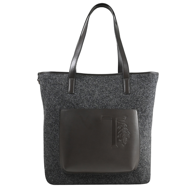 TODS 專櫃經典肩背托特包,精緻手工車線,俐落簡約的造型,採用毛呢拼接牛皮材質/內襯織布材質,內有1拉鍊內袋+1貼袋供收納,可放A4大小文件、摺疊傘等隨身物品,可手提也可肩背,無論上班或出遊皆實用,顯出低調奢華的質感,都會時尚感,搶眼又好搭風格。