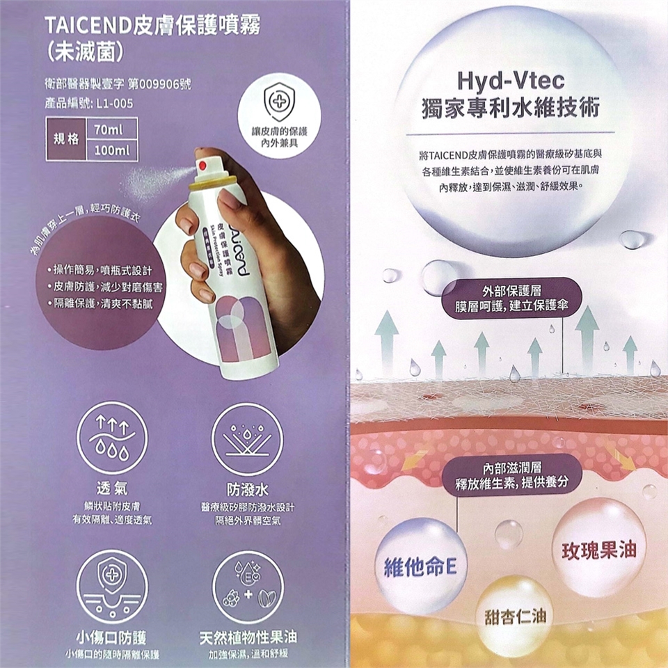 ◆核定品名:TAICEND 皮膚保護噴霧(未滅菌)