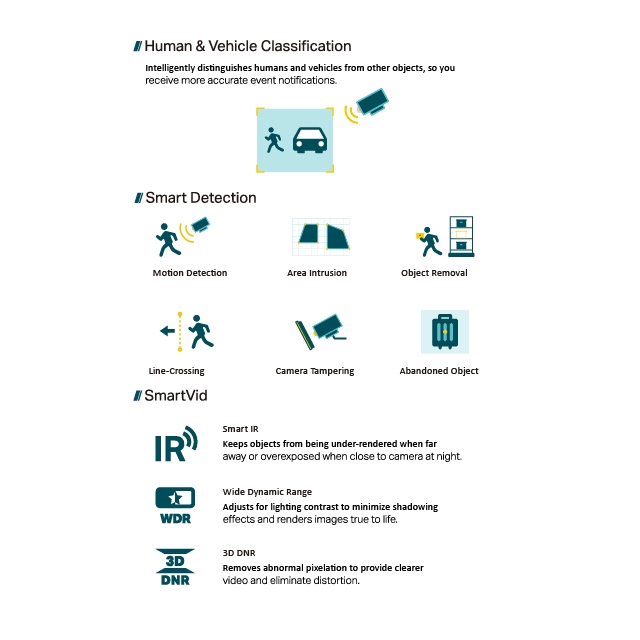 -人 & 車分類:將人像和車輛與其他物體進行區別,以便您可接收到更精確的事件通知。
