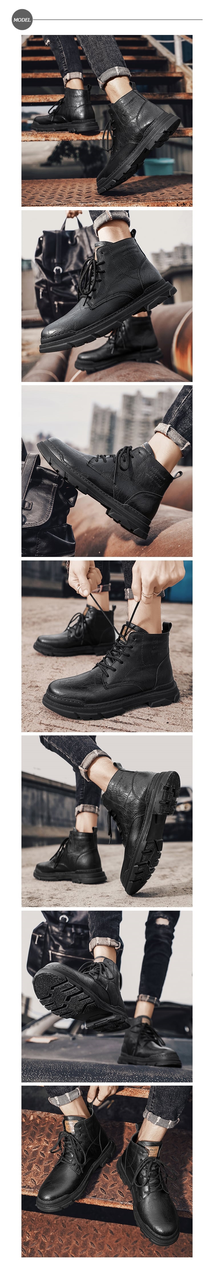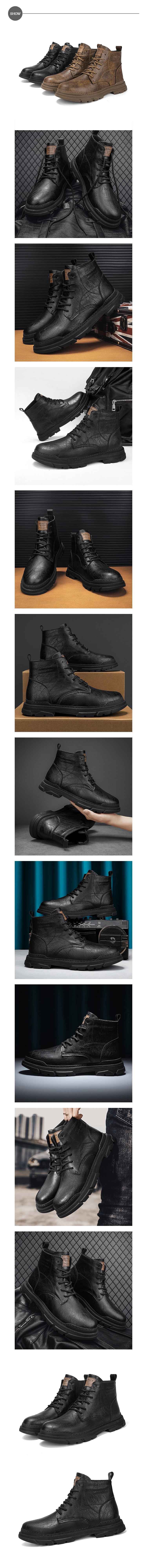 【KIRON】復古皮紋休閒馬丁靴/復古皮紋潮流時尚休閒馬丁靴 男鞋 黑