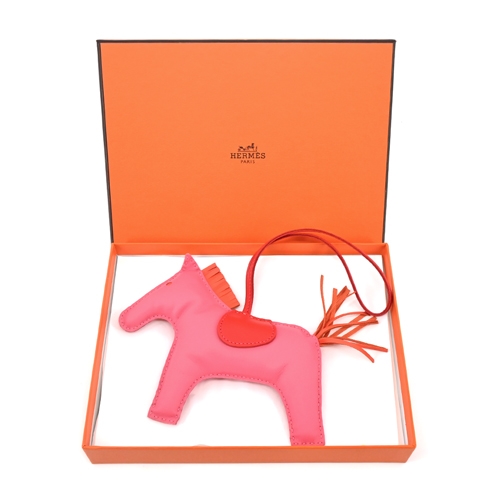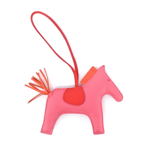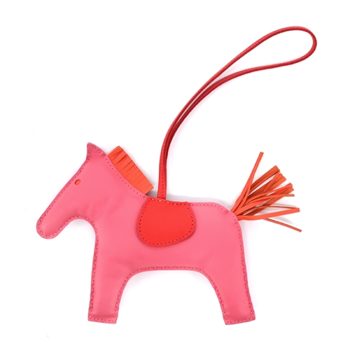 Hermes 愛馬仕 Rodeo小羊皮撞色手工馬兒吊飾(大/粉/橘)
