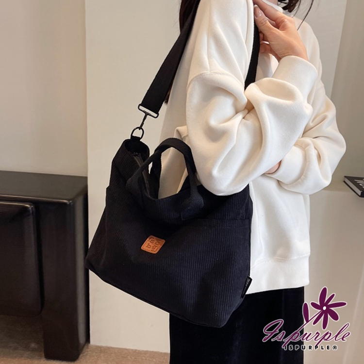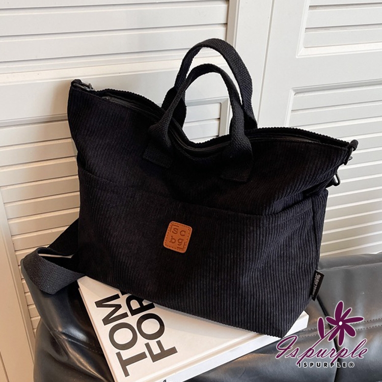 韓風條絨布料親膚時尚,拖特風斜垮側肩兩用包,