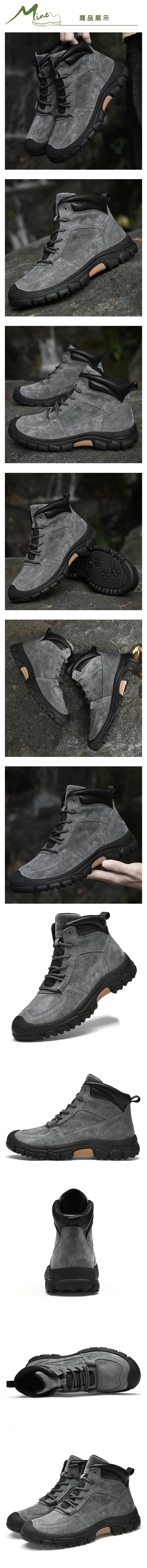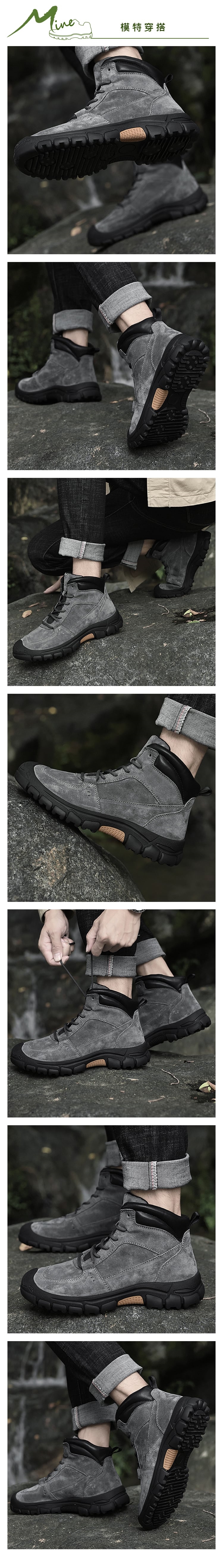 【MINE】真皮磨砂戶外休閒登山靴/真皮磨砂豬巴革戶外休閒登山靴 男鞋 灰