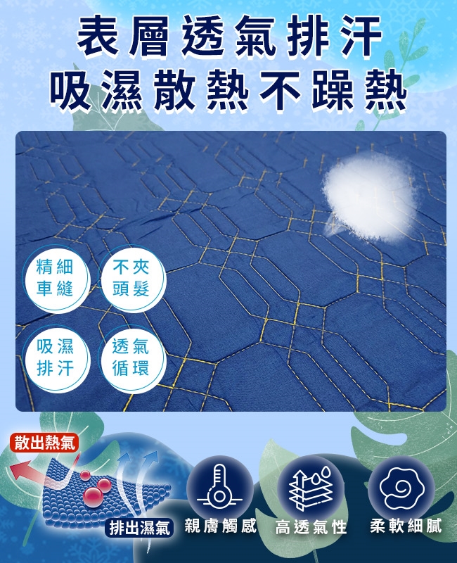 ★可以將人體表面的電荷迅速釋放,健康更升級,透氣表布吸濕排汗處理