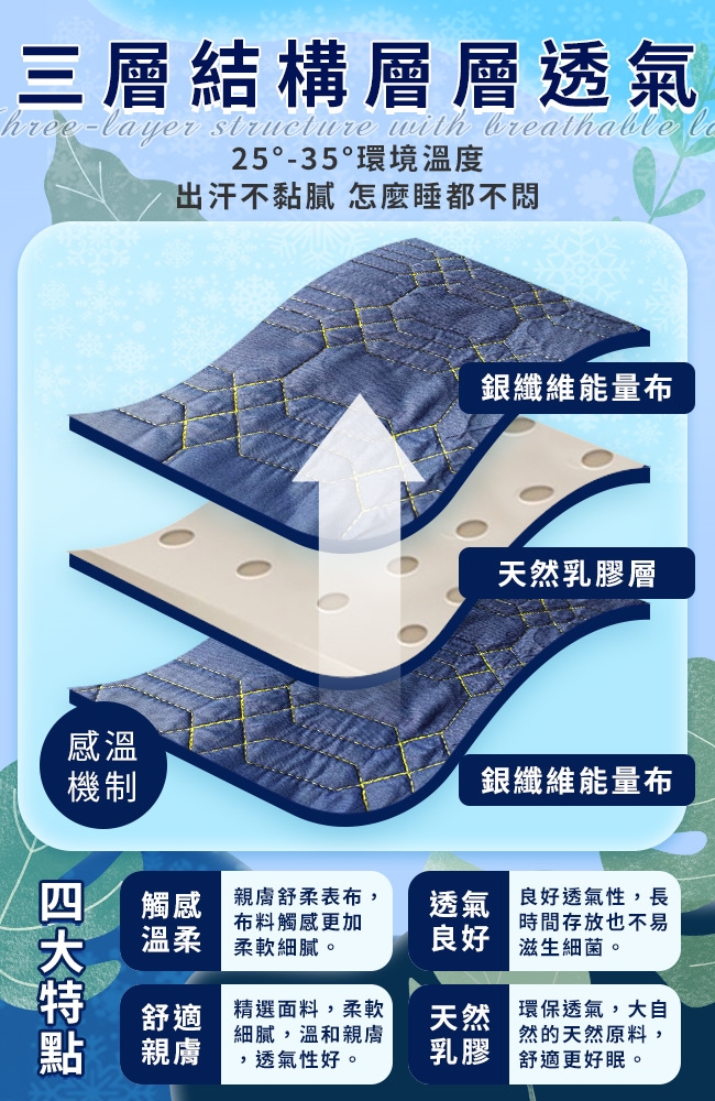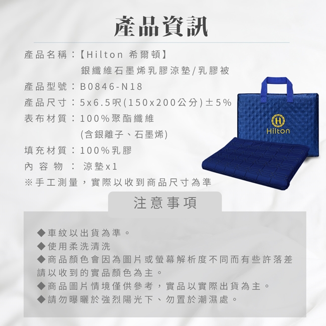 產品名稱:【Hilton 希爾頓】銀纖維石墨烯乳膠涼墊/乳膠被