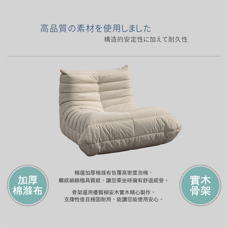 採用高級加厚棉滌布包覆高密度泡棉,觸感細緻,坐感舒適加倍!