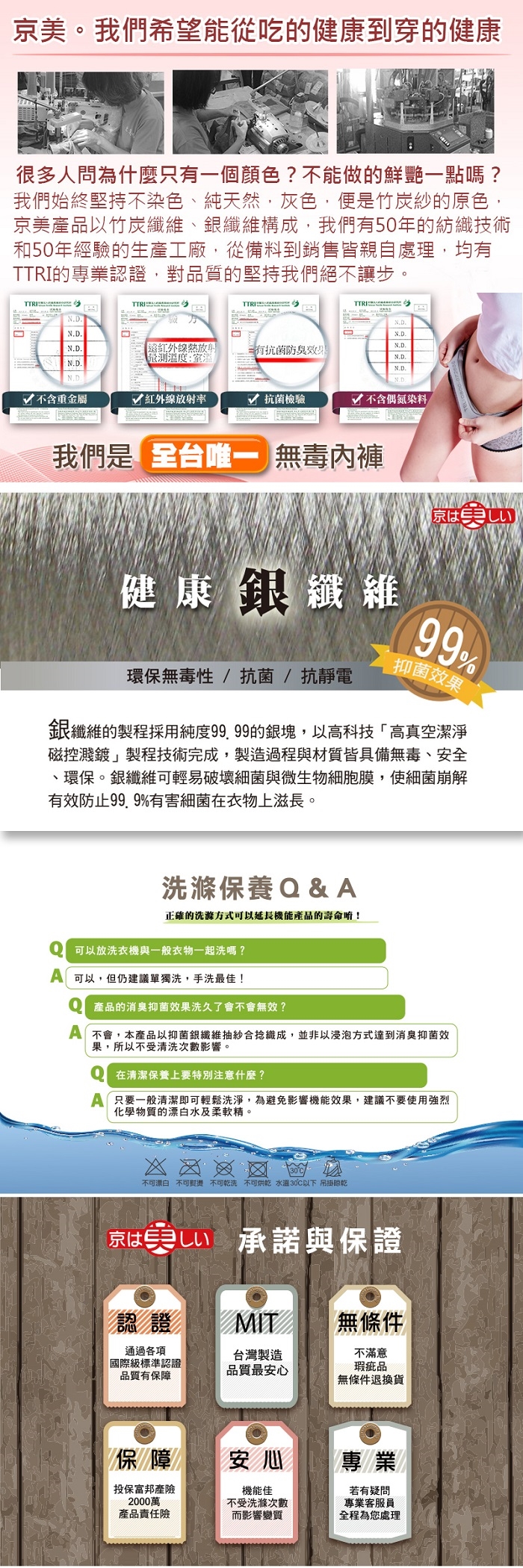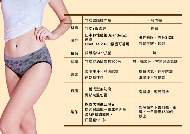 A.為竹炭纖維能有效吸濕排汗並且能產生遠紅外線,透氣不悶熱/銀纖維設計 褲底銀纖維布料可以有效抑菌除臭,