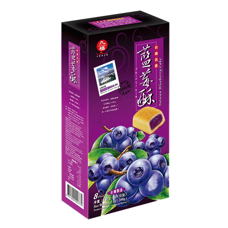 | 內容物成份 | 藍莓醬(冬瓜.麥芽糖.糖.藍莓.香料.食用紅色四十號.食用藍色一號)、小麥麵粉、植物性酥油(棕櫚油.黃豆油.椰子油)、糖、無水奶油、奶粉、馬鈴薯澱粉、丙酸鈉E281(法定防腐劑)、香料 過敏原資訊:本產品含小麥、牛奶、大豆及椰子製品。同一產線有處理芒果類、芝麻類及亞硫酸鹽類 |