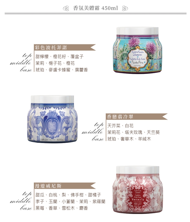 美體霜–沐浴或淋浴後,取適量塗抹於全身,輕輕按摩至吸收。