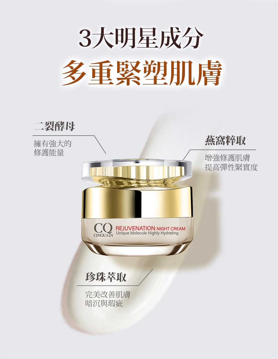 璀璨光滋養熬夜霜:於保養的最後一個步驟,取適量乳霜塗抹至全臉。