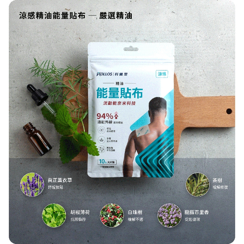●成分:棉布、無溶劑膠、洸動能天然遠紅外線礦石粉、胡椒薄荷精油、薰衣草精油、朧腦百里香精油、茶樹精油、白珠樹精油、一條根精油。
