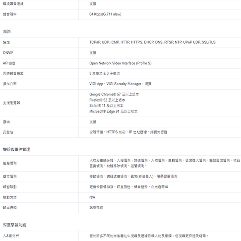 -智慧影像提升:VIGI 的專業影像處理技術大幅提升了影像的品質,這對於您的監控安全需求十分重要,包含智慧紅外線、真 WDR、3D DNR 和夜視。