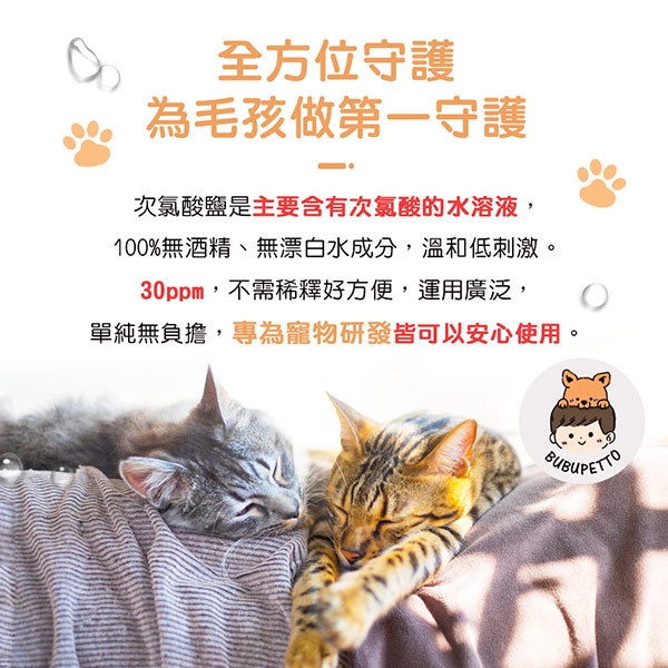 BUBUPETTO-貓咪衣物清潔用免稀釋次氯酸水-商品特色