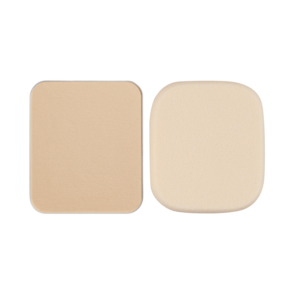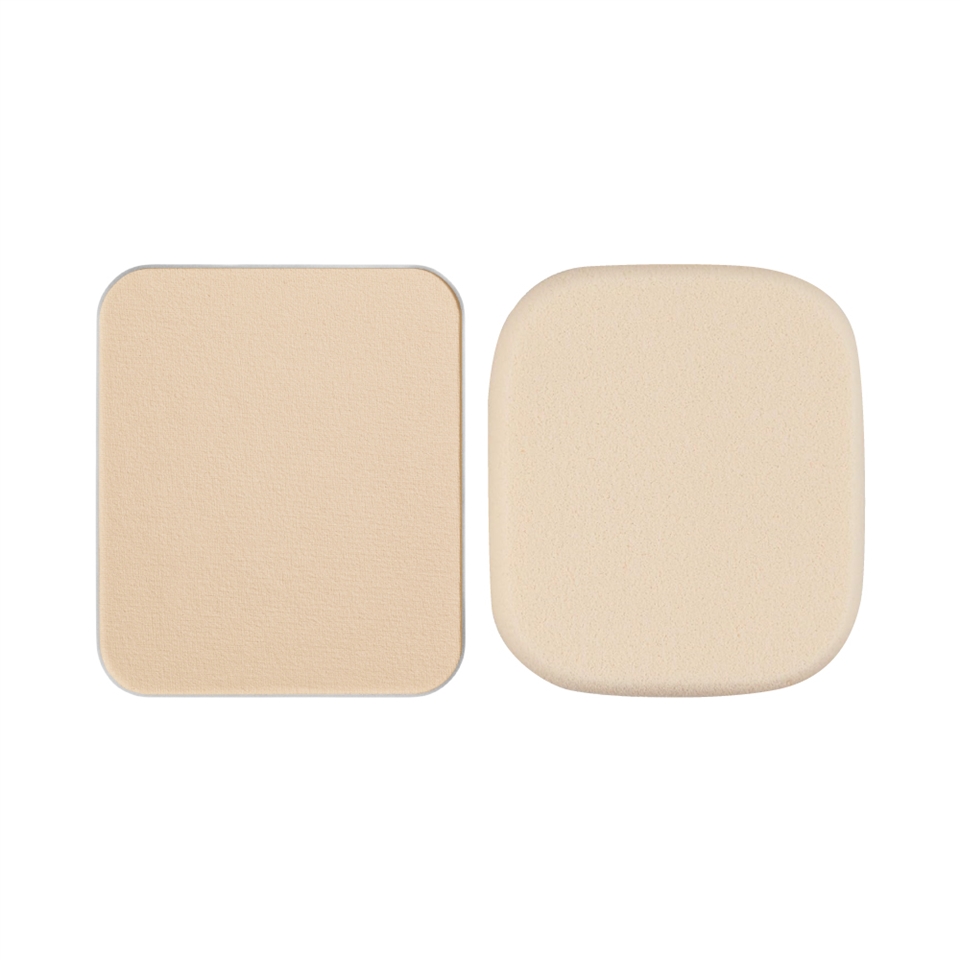 取適量粉底放在半塊專用海綿上,將海綿從臉部中央輕輕滑到外面均勻混合。