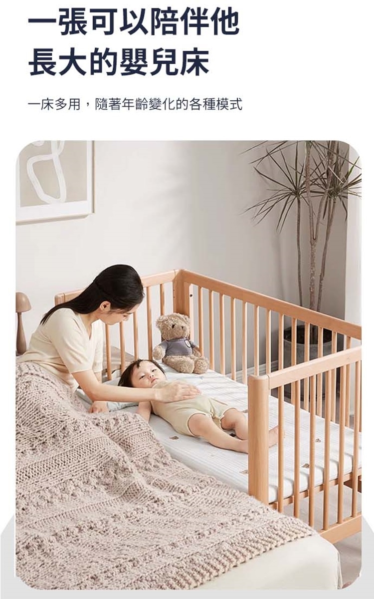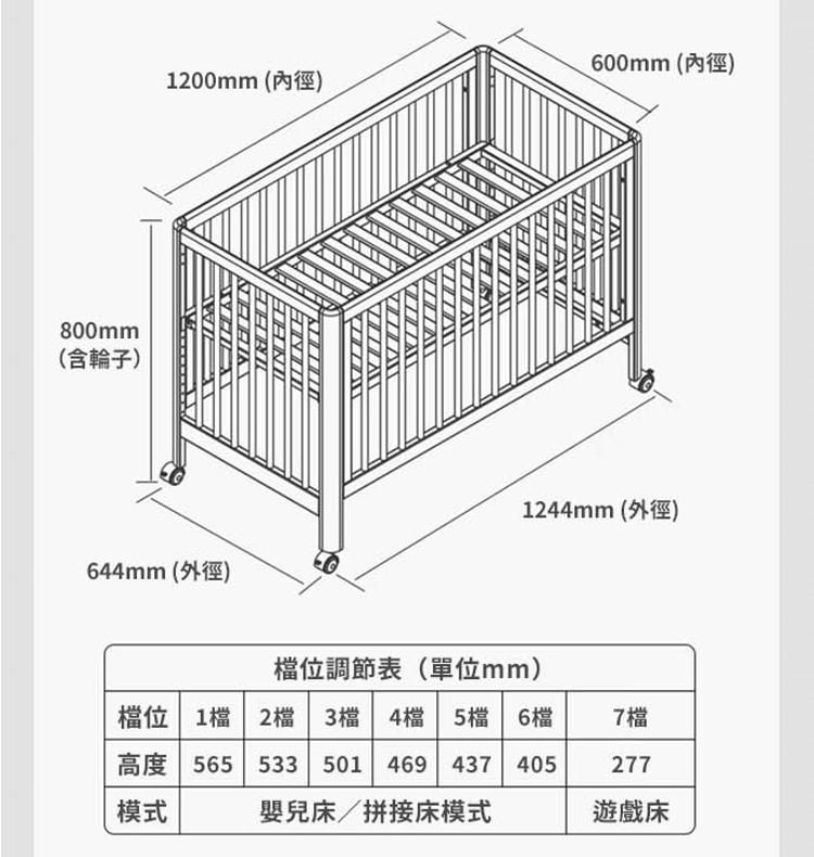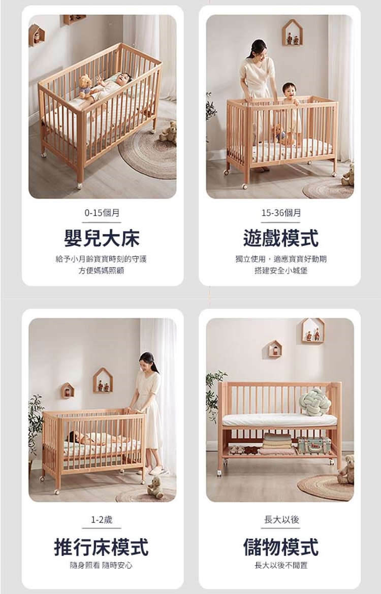 - 四種模式變化,拼接床、嬰兒床、發沙床、遊戲床