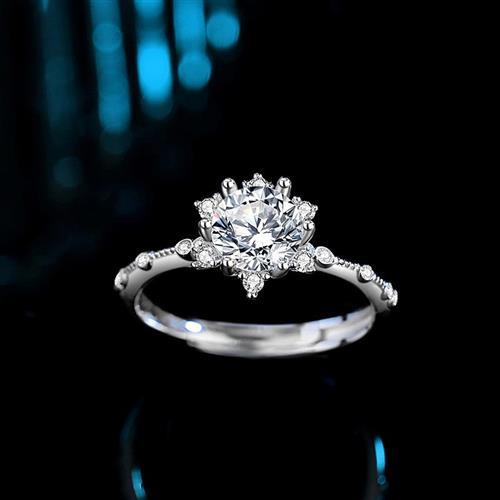 【米蘭精品】莫桑石戒指925純銀開口戒-一克拉六爪星芒D色女飾品74gk10
