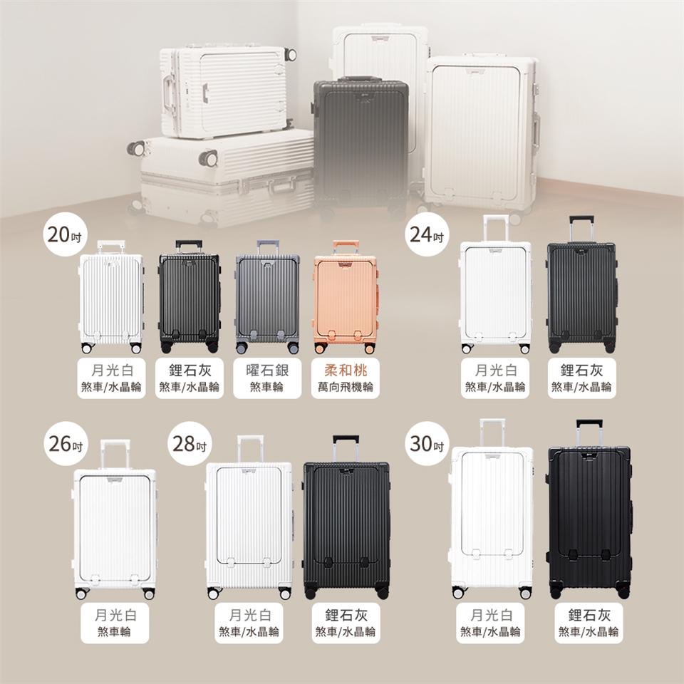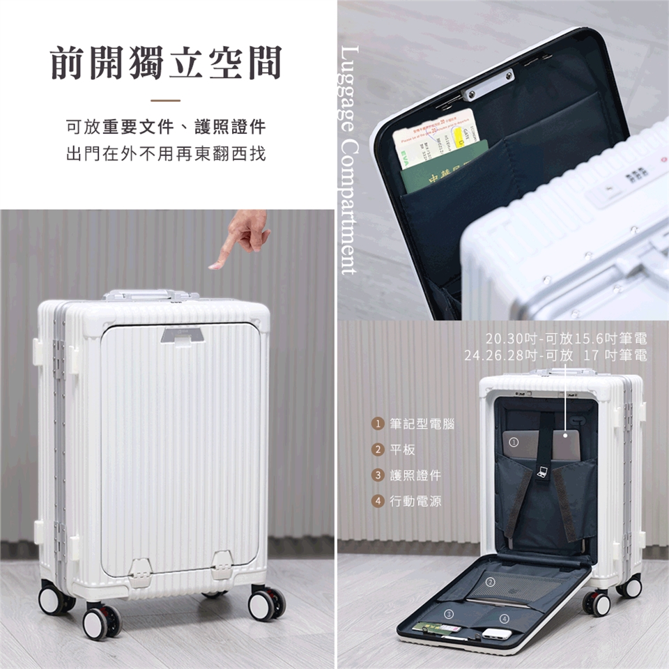 【月光白】20吋多功能前開式 鋁框PC登機行李箱✈️攜旅的輕奢,旅行的極致: