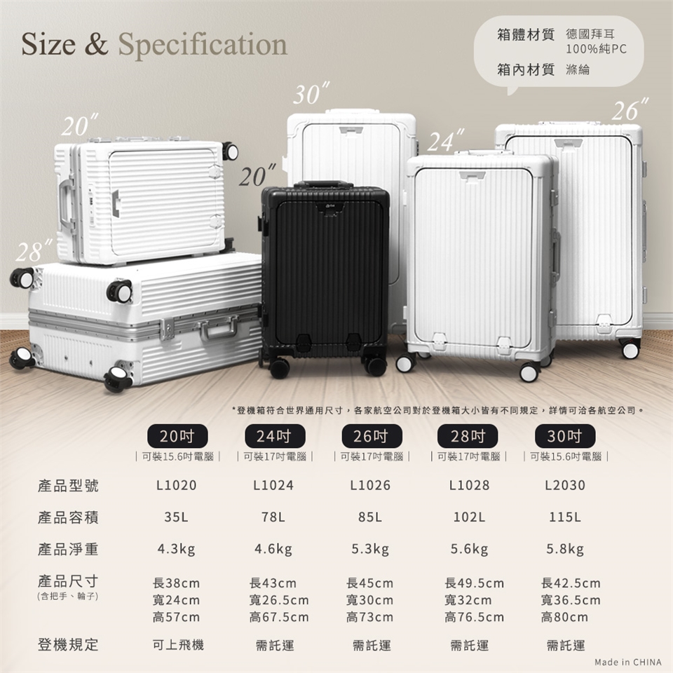- 走到哪就能carry你到哪的多功能30吋鋁框行李箱