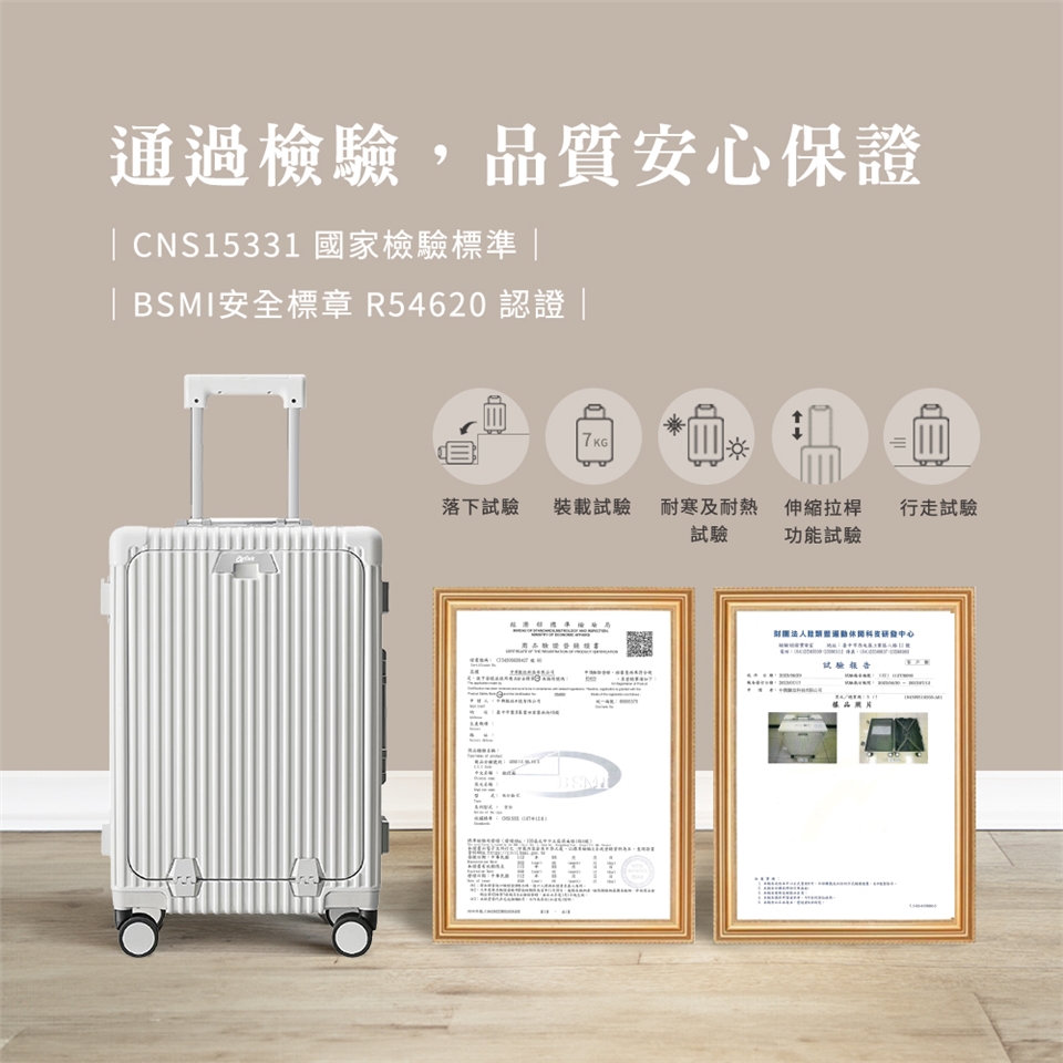 - 鋁合金邊框,相較拉鍊行李箱更加防水、耐摔耐撞、安全不易被撬開