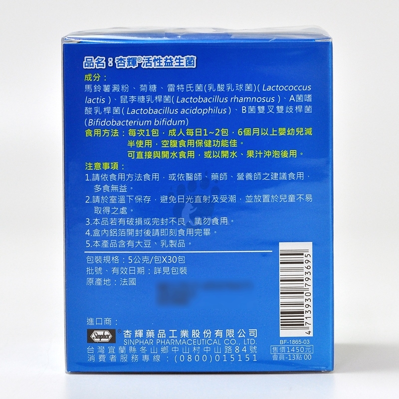 內容物名稱:馬鈴薯澱粉、菊糖、雷特氏菌……詳見外包裝標示