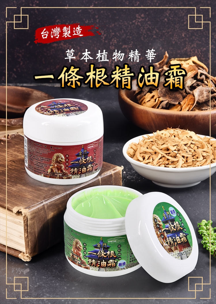 金門一條根精油霜,添加珍貴金門一條根,無論是按摩、推拿還是刮痧,都是您絕佳的助手!