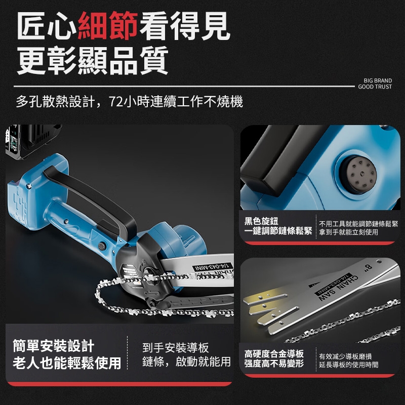 名稱:6寸免安裝無刷電鏈鋸