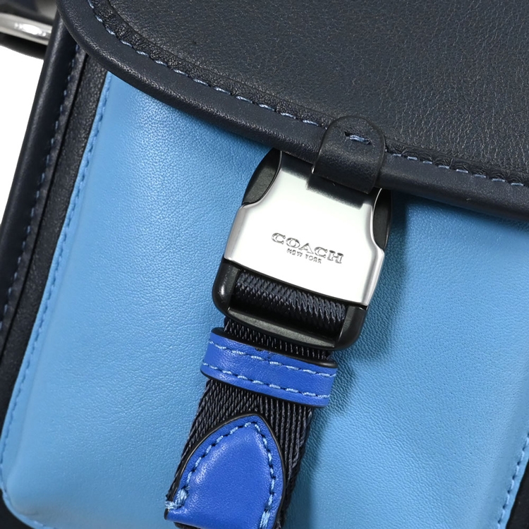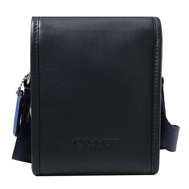 COACH 專櫃CHARTER NORTH/SOUTH系列,經典熱夯休閒斜背小包,採用經典LOGO烙印與撞色全皮革材質,翻蓋壓釦開口/內有1內層,附1掛袋小包(內含1貼袋;後方設有壓扣可將小包固定於皮帶、背帶上),內可收納短夾、鑰匙等隨身小物,官網熱銷款,是款輕鬆出門的包款,無論外出逛街或出遊皆實用。