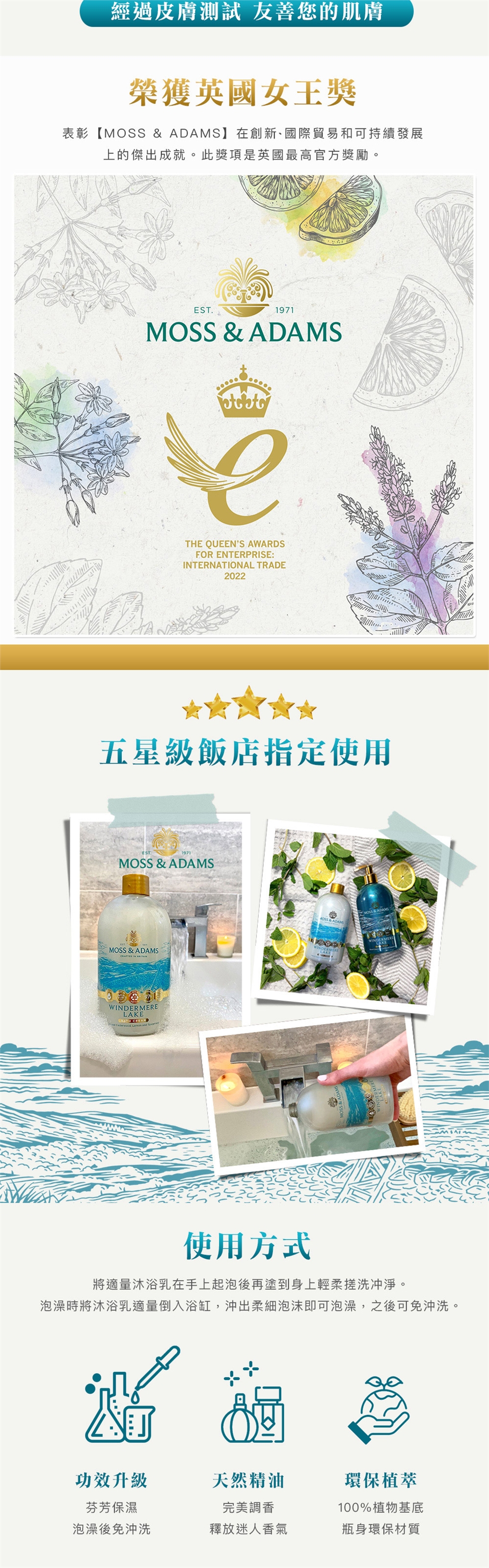 取適量產品於手中加少許清水搓揉起泡,均勻塗抹身體肌膚,輕輕按摩,再以清水洗淨。或將產品倒入浴缸流水中泡澡使用。