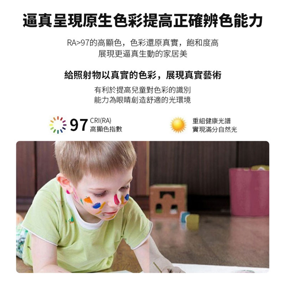 【這款燈采用高顯色芯片,全光譜護眼光Ra?97,能夠提供生動自然的光照,高度還原物體的色彩】