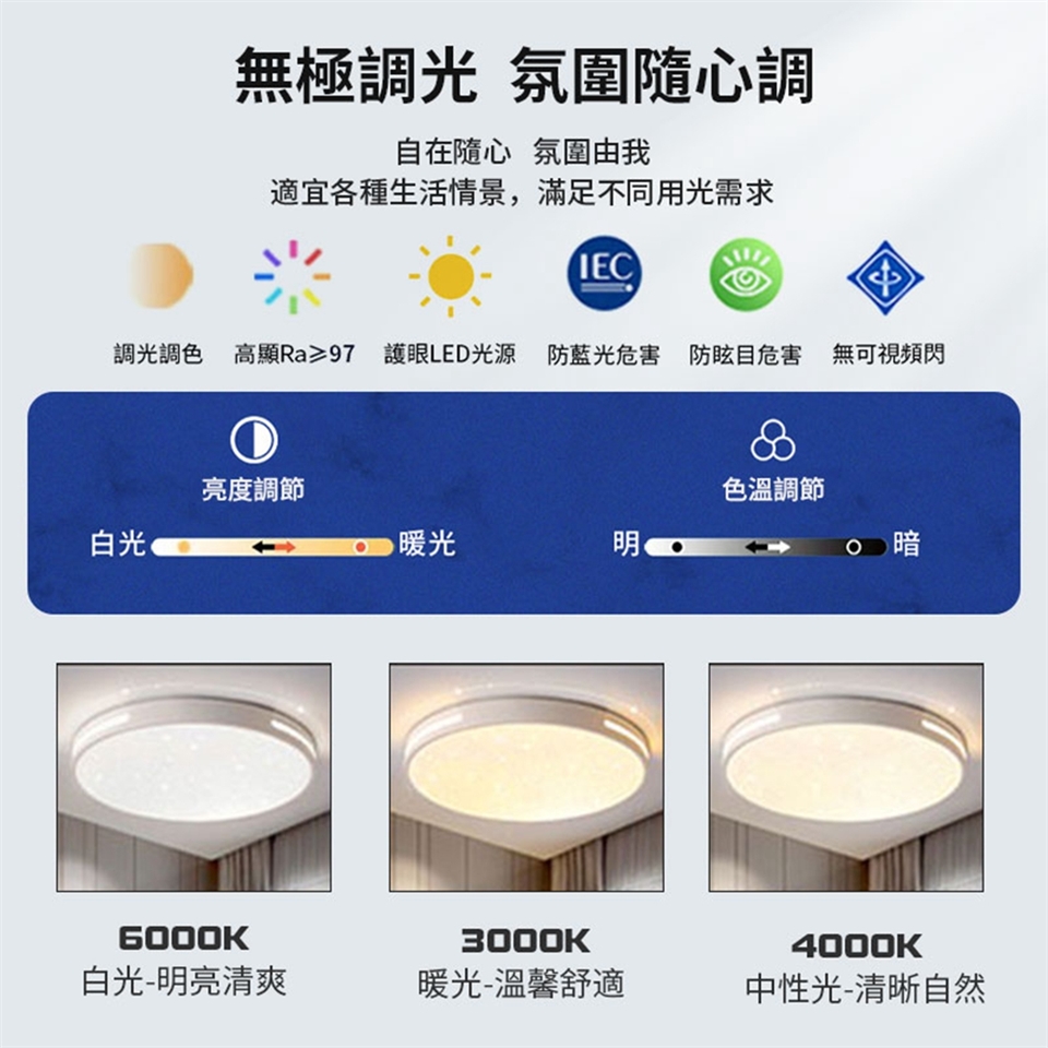色溫:無極調光3000k-6500k