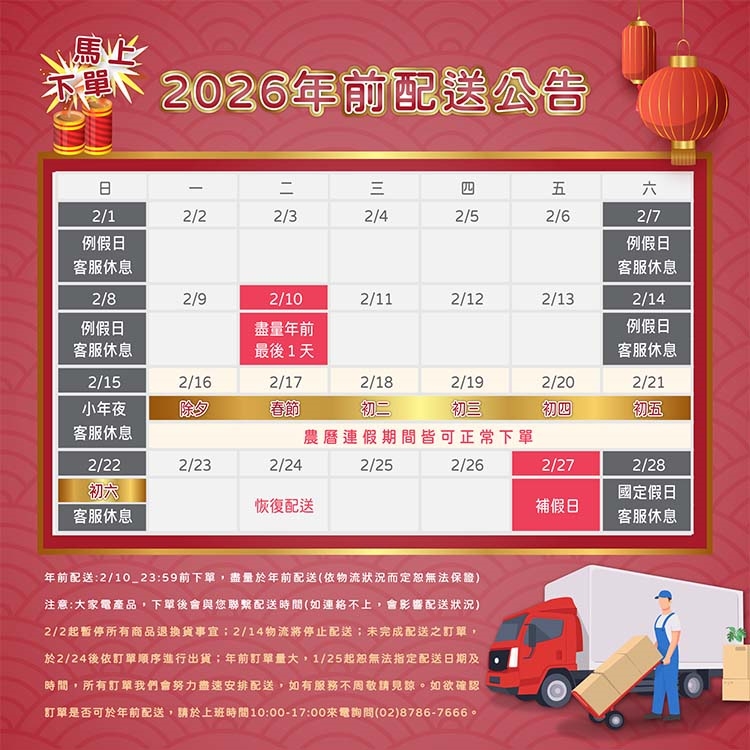 2/10前下單~還有機會年前到貨喔