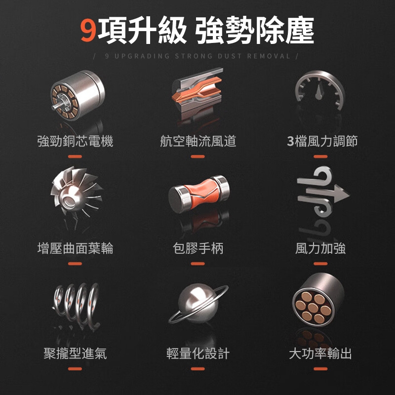 增壓曲面葉輪 舒適包膠手柄 風力加強設計